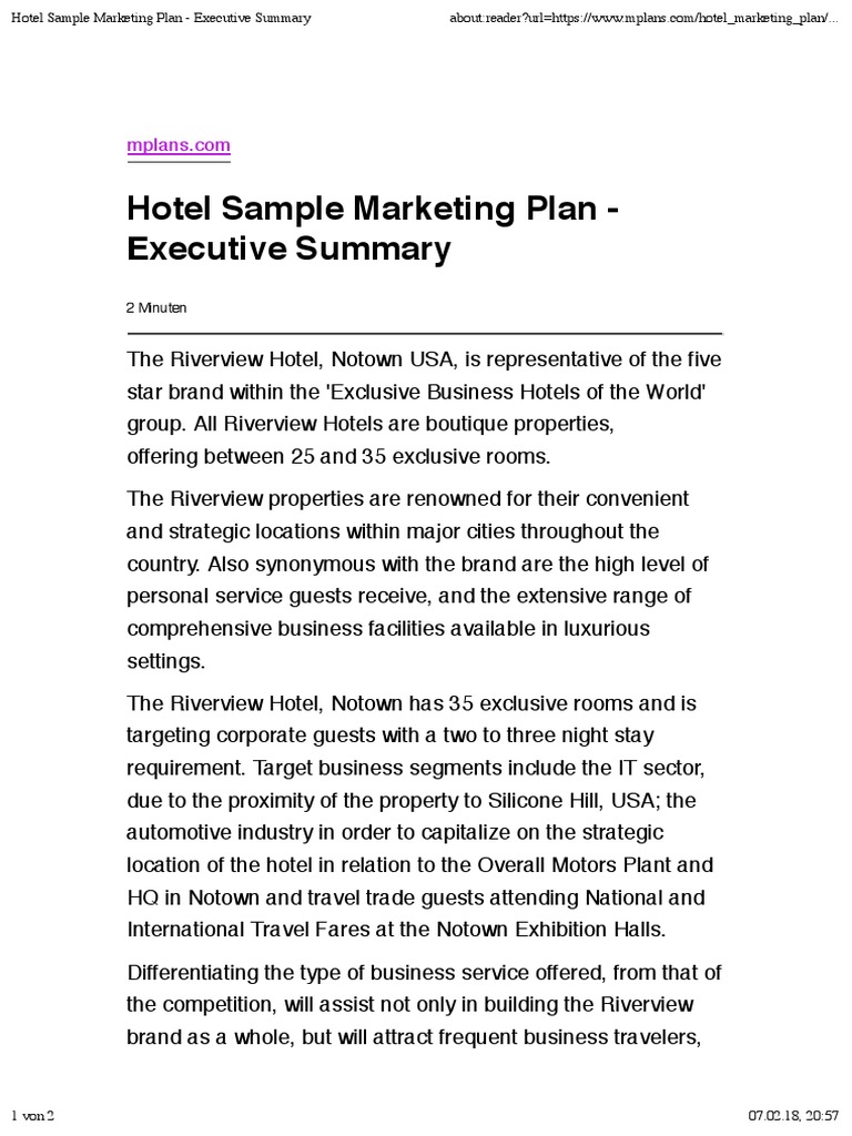 Hotel Sample Marketing Plan Executive Summary Strategic Management Brand