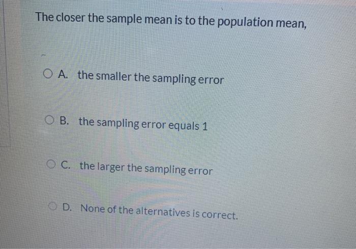 Solved The Closer The Sample Mean Is To The Population Me Chegg Com