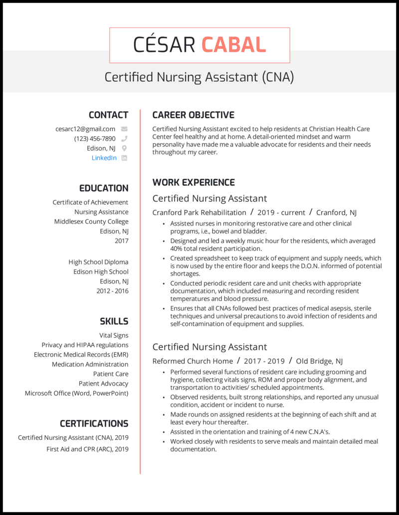 Certified Nursing Assistant Resume Writing Guide 12 Templates 2020